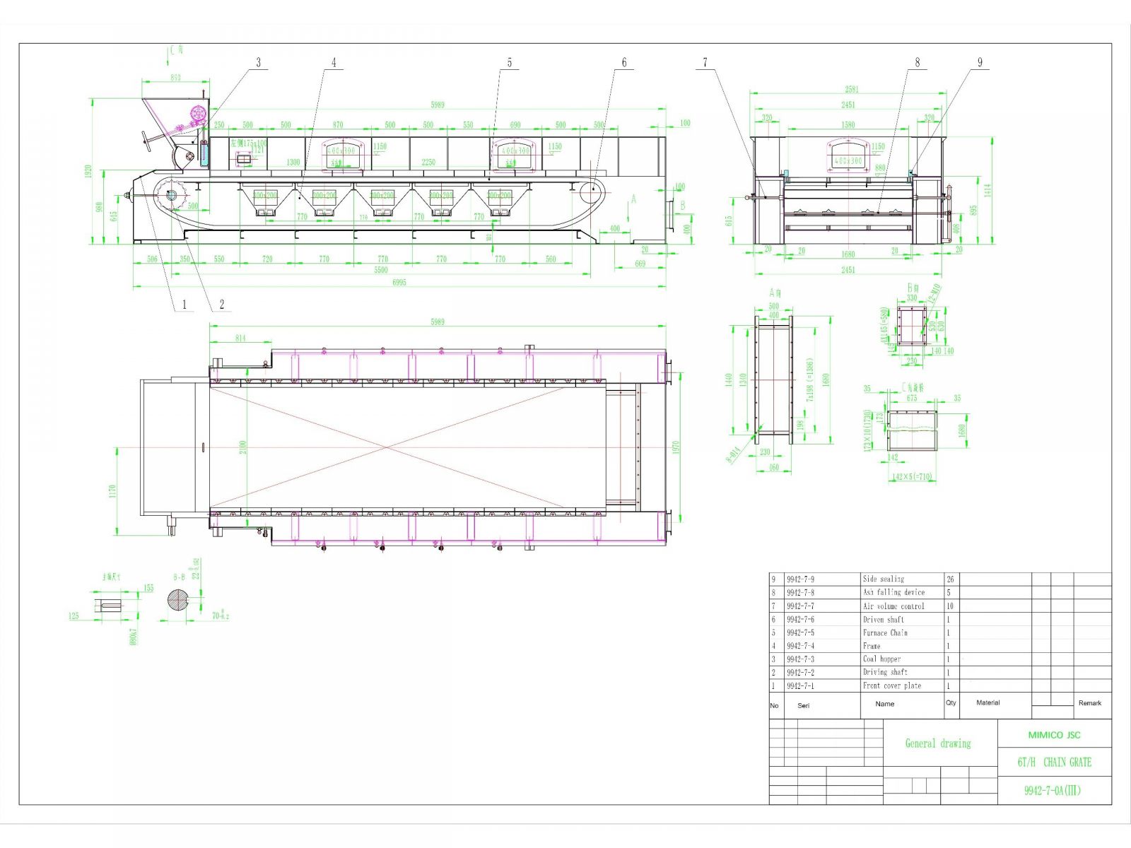 Các đặc điểm chung của ghi xích cho lò hơi bao gồm: