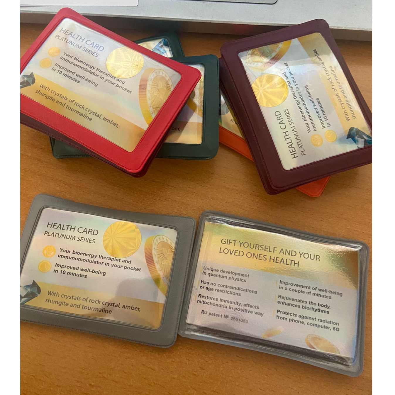 Thẻ lượng tử là một liệu pháp năng lượng sinh học trong túi của bạn. Nó bắt đầu hoạt động ngay lập tức, chỉ cần bỏ vào túi của bạn với một bên không hoạt động đối với cơ thể. Sau một thời gian ngắn, Thẻ tương tác với hào quang của bạn, tạo ra một khu phức hợp chăm sóc sức khỏe mạnh mẽ. Trong trường hợp mắc bệnh và xuất hiện bất kỳ triệu chứng đau đớn nào (viêm tủy răng, đau ở gan, thận, đau đầu, v.v.), không nhất thiết phải tự đầu độc bằng thuốc; chỉ cần áp thẻ vào điểm đau có mặt hoạt động của ảnh ba chiều quang học là đủ. Sau một thời gian ngắn, bạn sẽ nhận thấy cơn đau thuyên giảm như thế nào, và với việc sử dụng liên tục các thẻ Medical, nguyên nhân chính của bệnh sẽ biến mất. Cấu trúc của nước Đặt một ly nước (100-150 ml) lên mặt nổi ba chiều của thẻ trong 5-10 phút. Bạn lấy nước chùm ngây chữa bệnh. Họ có thể tính tiền đồ uống, đồ ăn, mỹ phẩm, mặt nạ chống lão hóa. Nước cấu trúc làm sạch, trẻ hóa các tế bào của cơ thể, đốt cháy chất béo, thúc đẩy giảm cân. Chú thích của Sáng chế Thiết bị trị liệu từ trường đối lưu sinh học Thẻ Sức khỏe là sự phát triển độc đáo của một nhóm các nhà khoa học Nga dưới sự hướng dẫn của V. Verzhbitsky dựa trên những thành tựu của vật lý lượng tử. Là một phần của thiết bị, một hệ thống từ tính, có hoạt tính sinh học trong các thuộc tính của nó, bao gồm các nam châm đất hiếm, đa cực, đa cực, kết hợp với tinh thể đá và tinh thể hổ phách.
