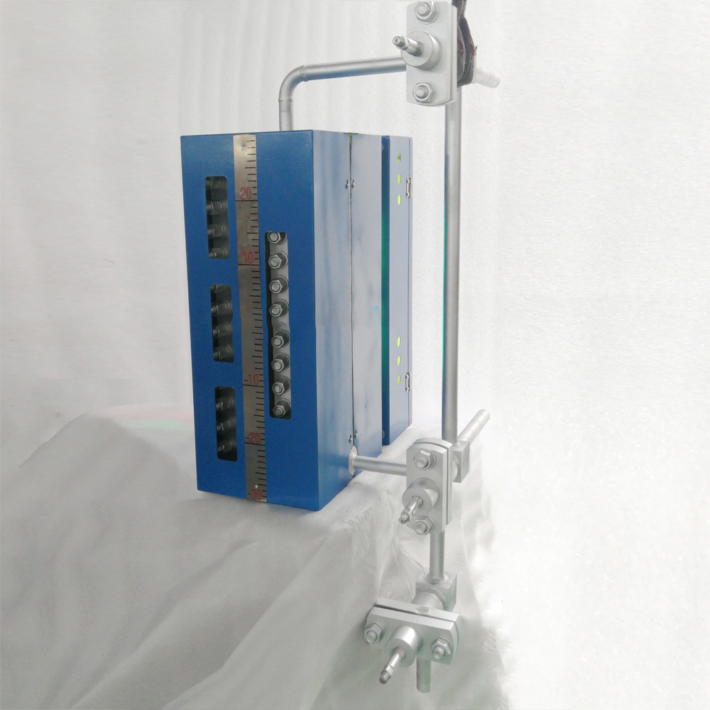 Đồng hồ đo mức chất lỏng được kết nối với mặt bích trên và dưới của đồng hồ đo mức chất lỏng và các mặt bích trên và dưới của bình chứa để tạo thành một thiết bị liên lạc, để có thể quan sát trực tiếp mực chất lỏng.