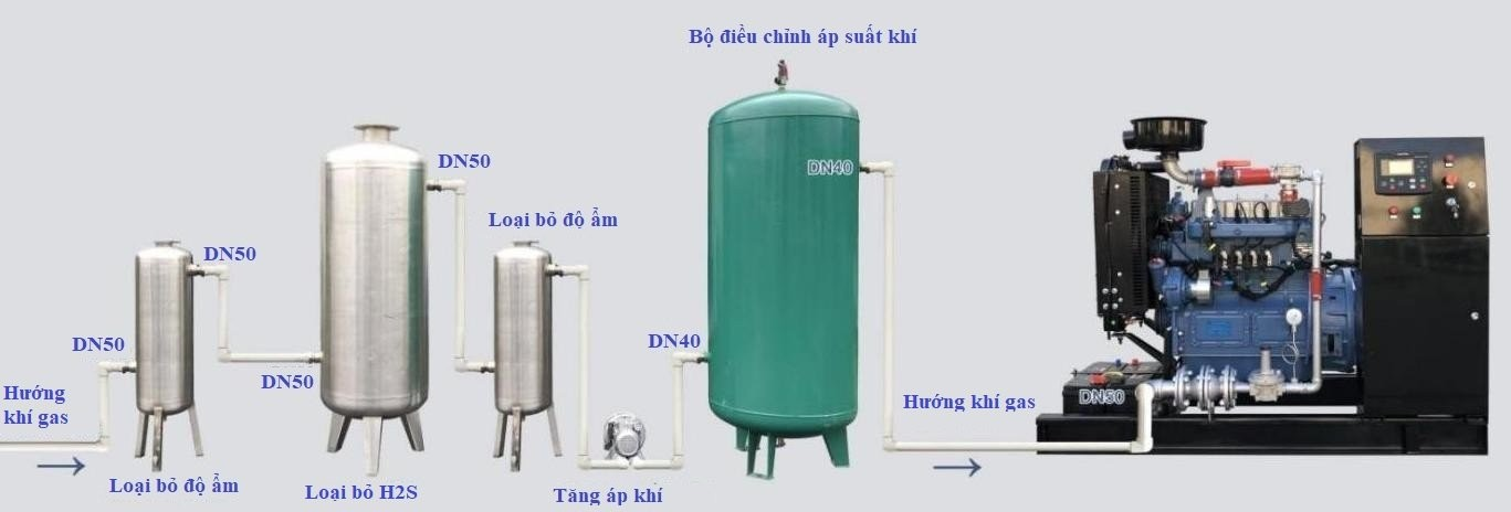 Áp dụng động cơ khí tăng áp và làm mát liên tục, để sử dụng khí sinh học