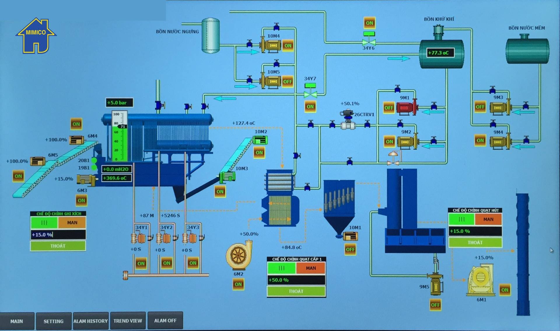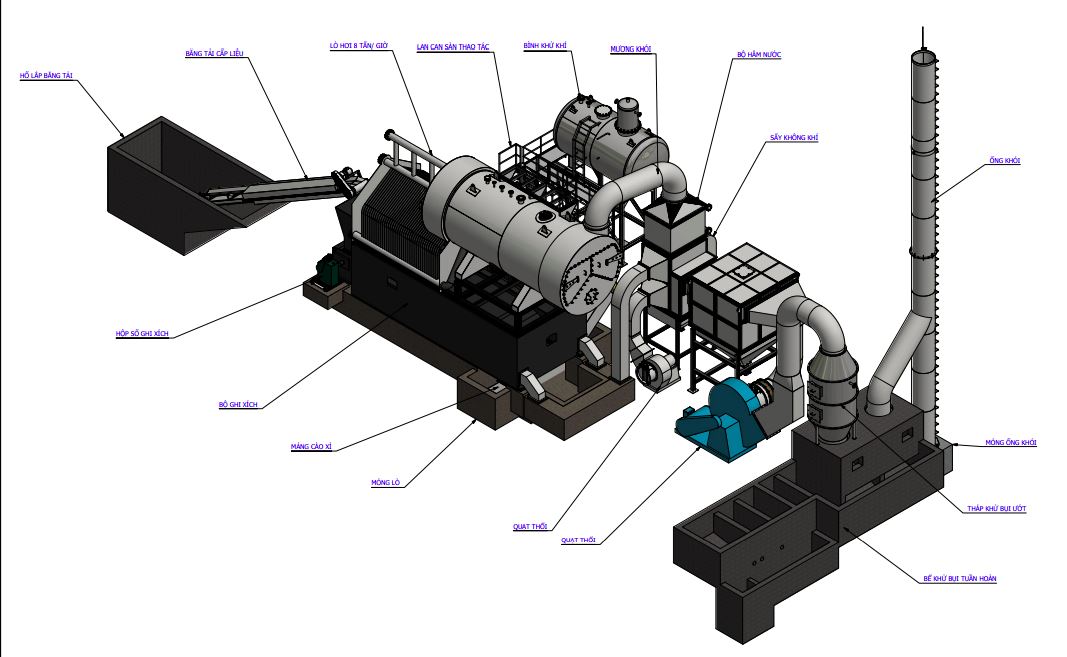 - Lò hơi đốt đa nhiên liệu được thiết kế chế tạo là dạng lò nằm, tổ hợp ống nước, ống lửa, buồng đốt phụ, có 03 pass dẫn khói nóng nên hiệu suất truyền nhiệt của lò cao, nhiệt độ khói thải thấp, mức độ hấp thụ nhiệt của lò hơi rất tốt. Ngoài ra đường khói pass 3 của lò được qua các hộp đọng tro bụi nên đường khói thoáng, việc vệ sinh tro bụi rất dễ dàng. Các ống nước và ống lửa được vệ sinh sửa chữa thay thế một cách thuận tiện. hệ thống sấy không khí và hệ thống hâm nước được bố trí ngay sau đường khói ra của lò giúp tăng hiệu suất của lò giảm chi nhiên liệu