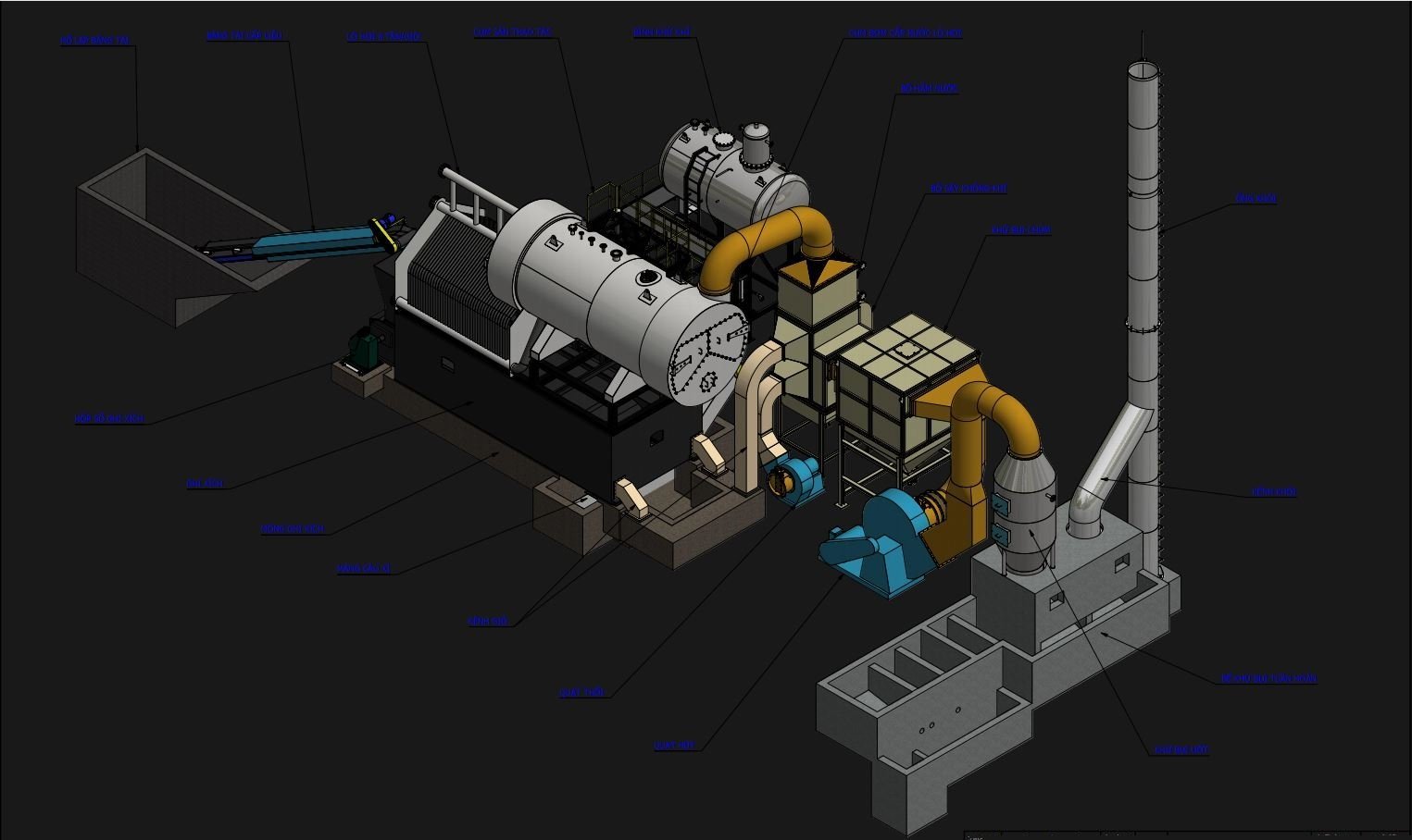 • Lò hơi đốt đa nhiên liệu được thiết kế chế tạo là dạng lò nằm, tổ hợp ống nước, ống lửa, buồng đốt phụ, có 03 pass dẫn khói nóng nên hiệu suất truyền nhiệt của lò cao, nhiệt độ khói thải thấp, mức độ hấp thụ nhiệt của lò hơi rất tốtNgoài ra đường khói pass 3 của lò được qua các hộp đọng tro bụi nên đường khói thoáng, việc vệ sinh tro bụi rất dễ dàng. Các ống nước và ống lửa được vệ sinh sửa chữa thay thế một cách thuận tiện. hệ thống sấy không khí và hệ thống hâm nước được bố trí ngay sau đường khói ra của lò giúp tăng hiệu suất của lò giảm chi nhiên liệu