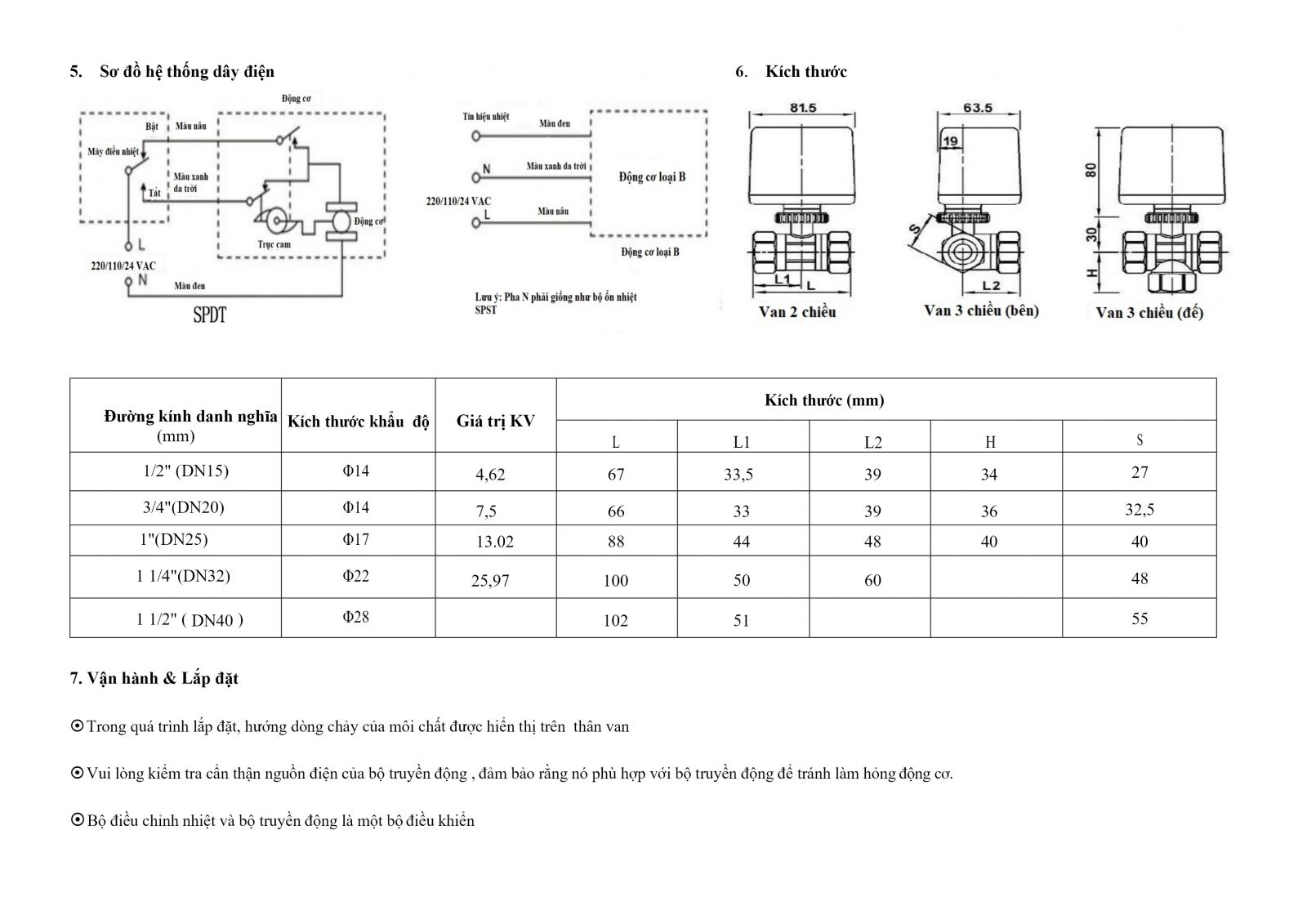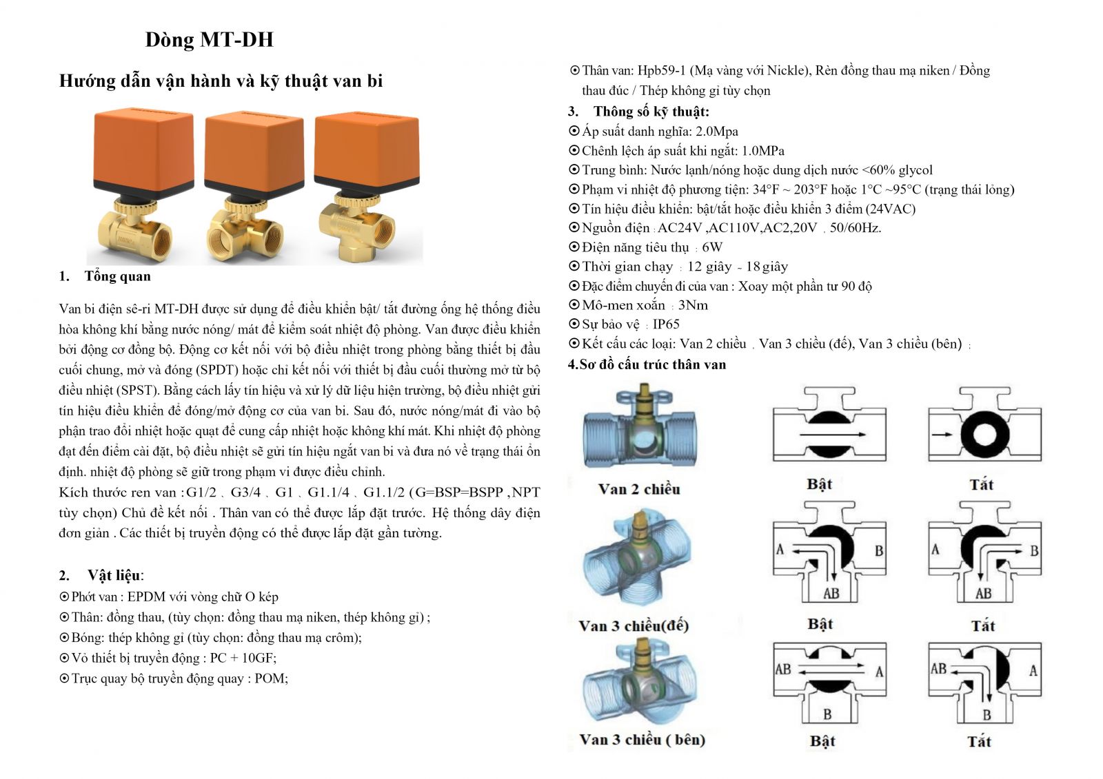Tín hiệu điều khiển: bật/tắt hoặc điều khiển 3 điểm (24VAC)